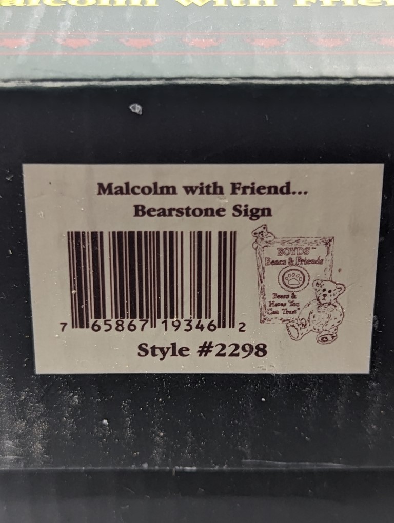 Boyds Bears & Friends – “Malcolm with Friend… Bearstone Sign”